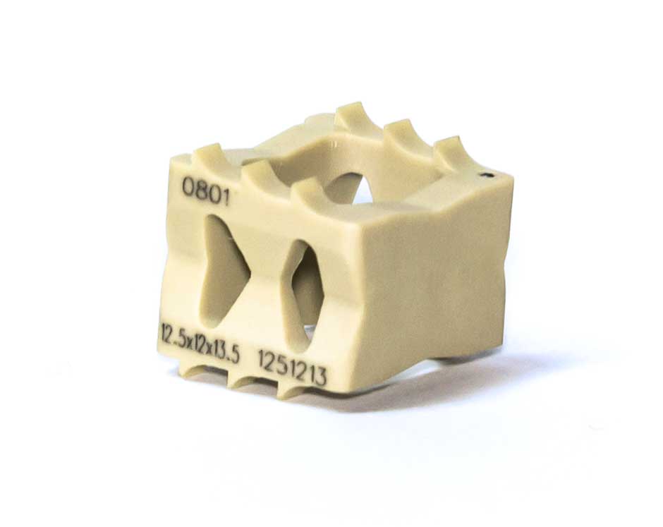 El sistema cervical C-Box de Innovasis ofrece implantes de PEEK en diferentes alturas.